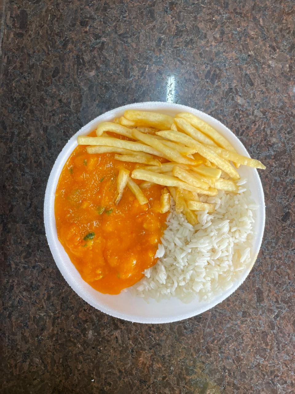 arroz branco ,batata frita e bobo de camarao